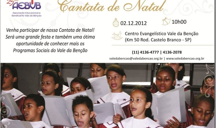 2 de dezembro é dia da Cantata de Natal da Associação Educacional e Beneficente Vale da Bênção.