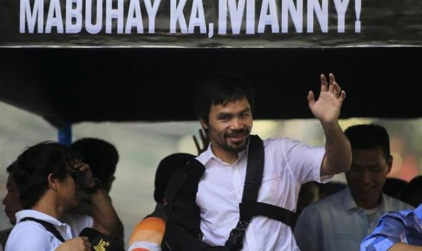 "Votem em candidatos que sejam competentes e tenham um bom coração. O futuro do país depende do tipo de líderes que escolhemos", disse Pacquiao. "Vocês devem estar orgulhoso de mim como seu congressista. Eu não roubo dinheiro do governo, na verdade, eu estou gastando meus próprios recursos para ajudá-los. Eu também não negocio os meus princípios nem o meu voto no Congresso".