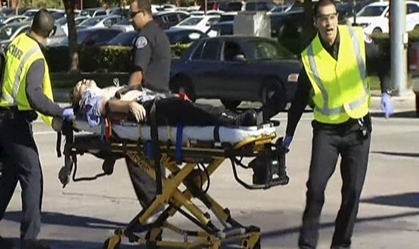 Um homem e uma mulher entraram atirando no local, matando pelo menos 14 pessoas e ferindo pelo menos outras 17, disseram autoridades.