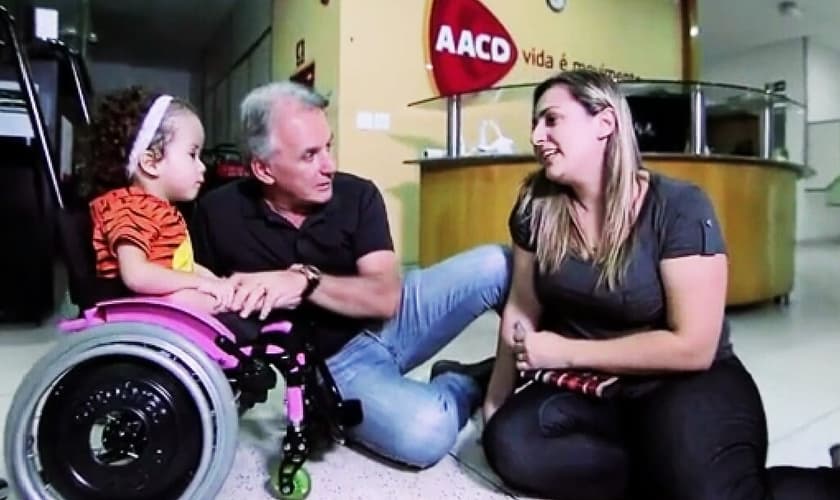 Cheia de simpatia e sensibilidade, Rebeca - que recebe o seu tratamento na AACD - levou o apresentador Otávio Mesquita às lágrimas e até mesmo 'abençoou' o comunicador com uma imposição de mãos.