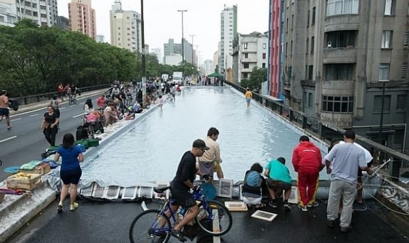 Para quem passou pela região central de São Paulo neste último domingo (23), deparou-se com uma piscina olímpica em pleno acostamento do Elevado Costa e Silva, conhecido como Minhocão. A novidade faz parte de uma intervenção da artista Luana Geiger, que integra a 10.ª Bienal de Arquitetura de São Paulo.