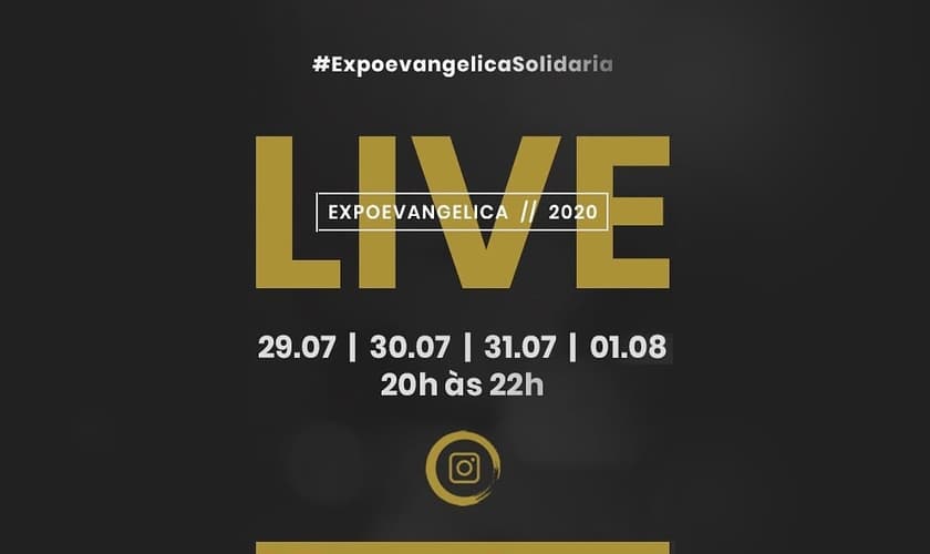 A Live ExpoEvangélica Solidária começa nesta quarta-feira (29) e vai até sábado (1), das 20h às 22h. Serão 4 dias de lives transmitidas pelo Instagram da feira.