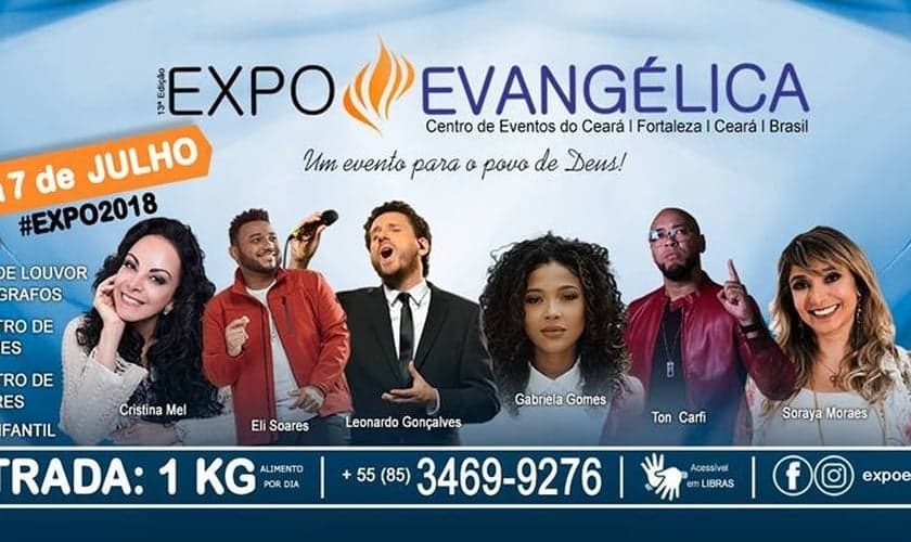 Considerado um dos maiores eventos cristãos do Brasil, a Expoevangélica será realizada no Centro de Eventos do Ceará, em Fortaleza. A cerimônia de abertura será no dia 4 de julho, às 14h, no Pavilhão Oeste (Portão A - Salões Pecém e Taíba).