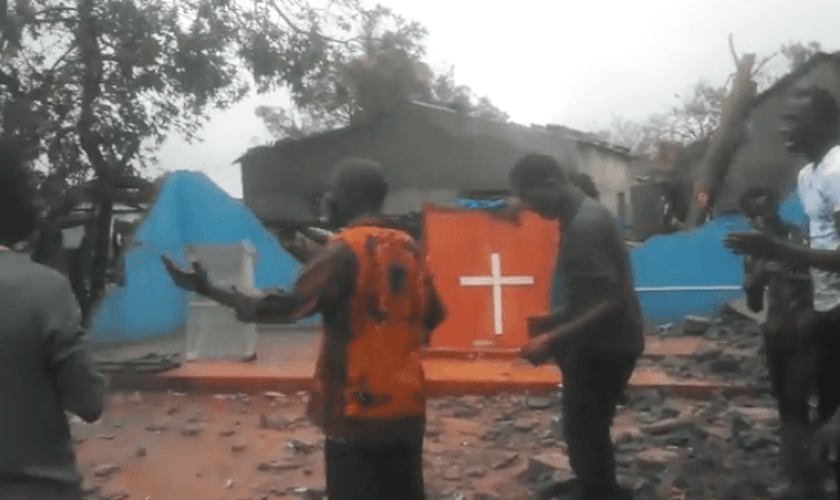As imagens publicadas pelo Projeto Moçambique nesta terça-feira (19) mostram um grupo de cristãos louvando em seu idioma local, direcionando a canção para “Jeová”. Ao redor deles, há um cenário de destruição. A cruz no altar da igreja permaneceu intacta.
