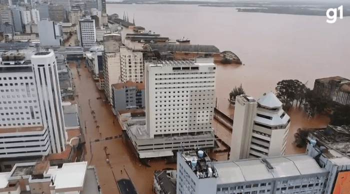 Nesta sexta-feira (3), o Rio Guaíba transbordou na capital, ultrapassando a cota de inundação. Segundo o governo do estado, a previsão é que a água atinja os 5 metros de altura, um nível histórico na cidade.