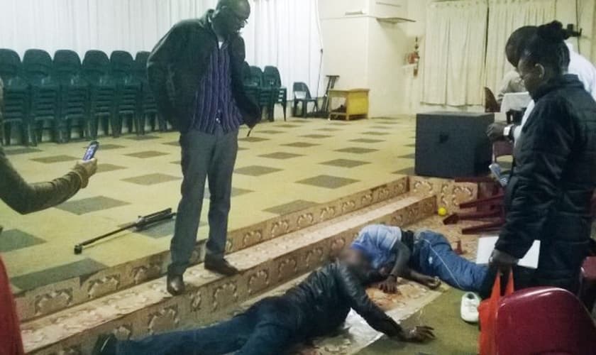 Um dos fiéis foi para fora da igreja procurar a polícia, que estava patrulhando as ruas no momento. Ao entrar no templo, os policiais viram os suspeitos feridos e sangrando deitados no chão.