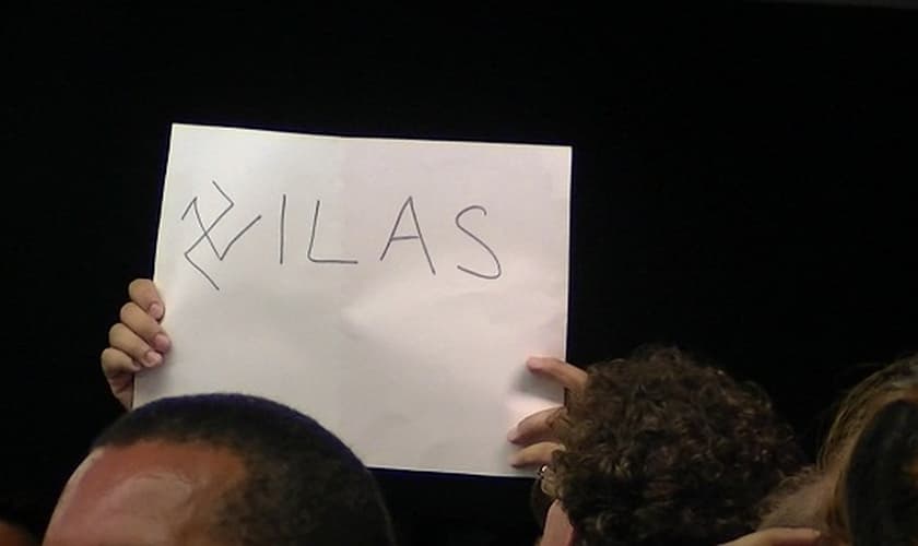 Além das interrupções às falas do pastor Silas Malafaia, os atividades gays e representantes da classe homossexual levaram cartazes com algumas ofensas ao líder evangélico.