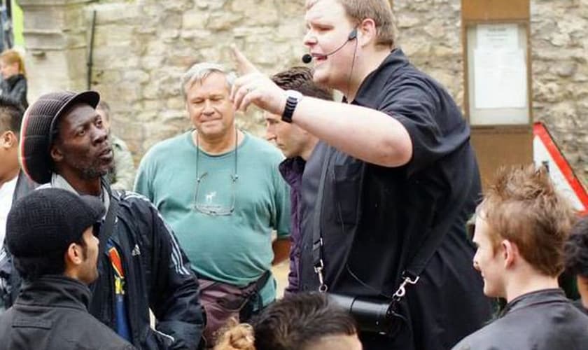 Pastor Josh Williamson prega o evangelho nas ruas do Reino Unido. (Foto: Daily Express)