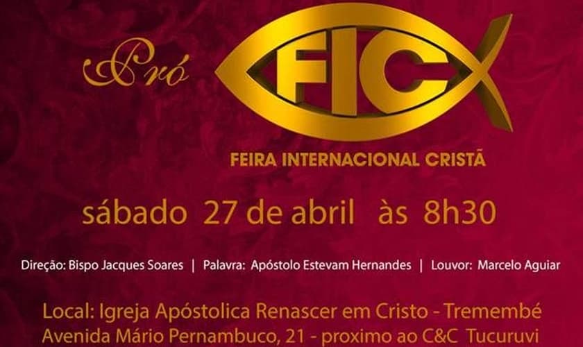 Marcelo Aguiar ministrará o louvor. A palavra será ministrada pelo Ap. Estevam Hernandes, presidente da CIEAB e fundador da Igreja Apostólica Renascer em Cristo.