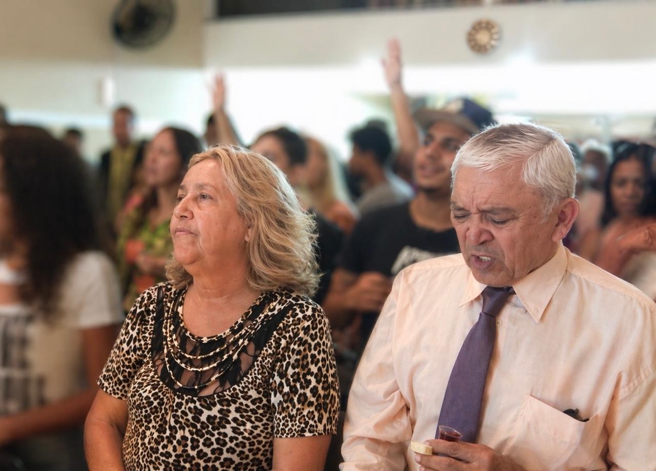 Pr. Inácio e Dirce Bento em culto de Ceia. (Foto: Arquivo pessoal)
