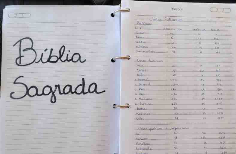 Amante da Palavra de Deus e frequentadora assídua da escola bíblica, Elisabeth começou o projeto no ano passado após ser inspirada por um pastor que fez a transcrição das Escrituras em 2023.