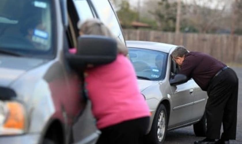 "Nós percebemos que durante o tráfego intenso, os carros ficavam parados na frente da igreja, então, colocamos faixas sinalizando o "Drive-Thru" e os motoristas começaram a entrar para receber orações", explica.