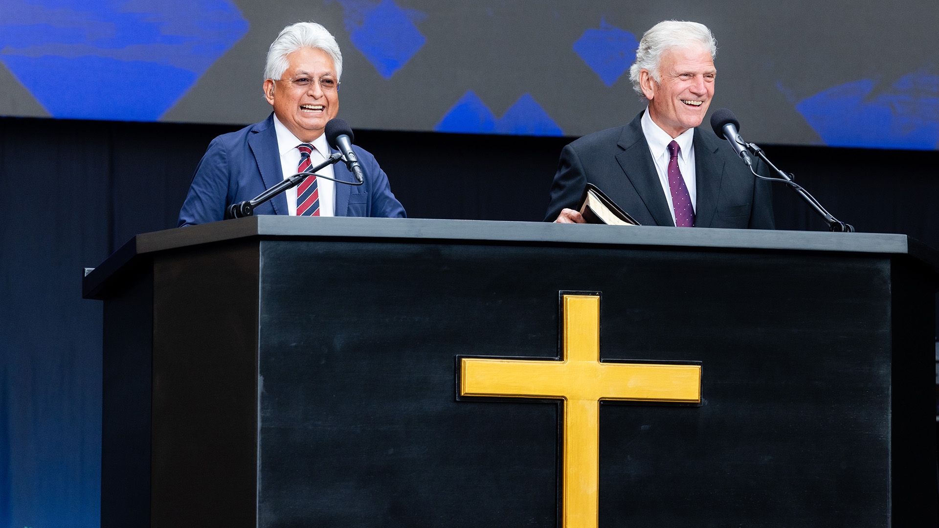 O evangelista Franklin Graham ministrou a Palavra de Deus no evento. (Foto: Reprodução/BGEA)