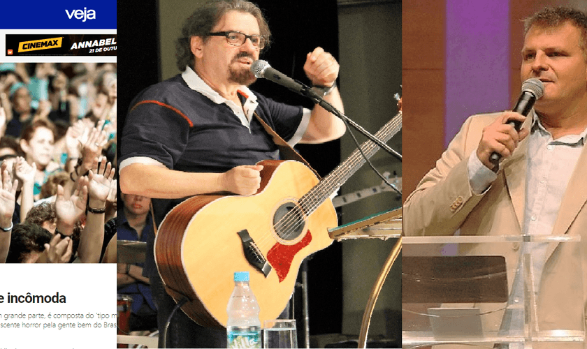 Artigo da revista Veja (esquerda) foi criticado por líderes cristãos, como Asaph Borba (centro) e Rina (direita). (Imagem: Guiame)