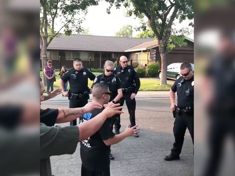 Recentemente, o grupo saiu para estender a mão para os policiais e orar por eles no meio da rua.