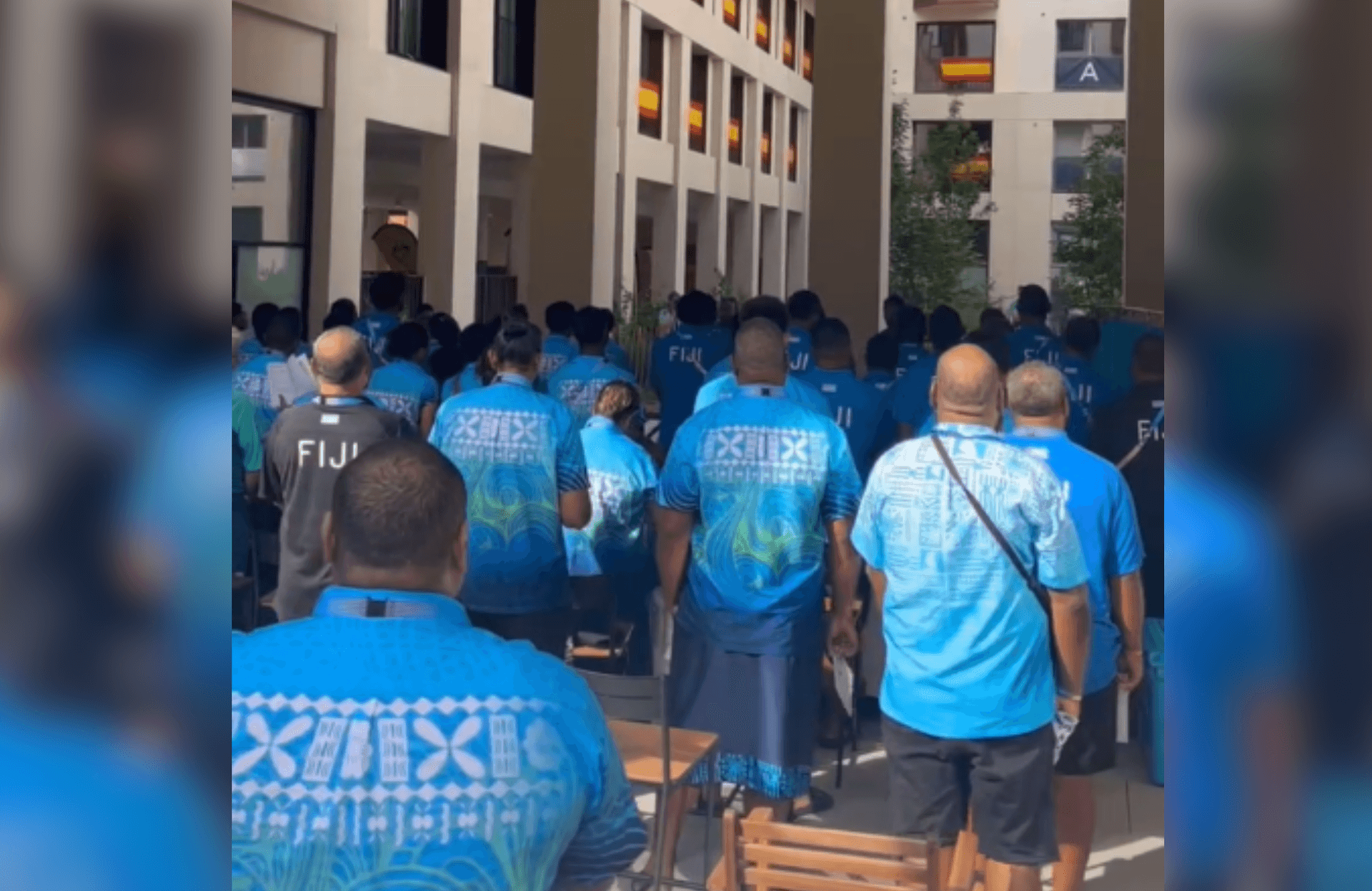 Uma atleta australiana filmou integrantes da equipe de Fiji cantando louvores na Vila Olímpica em Paris em dois momentos.