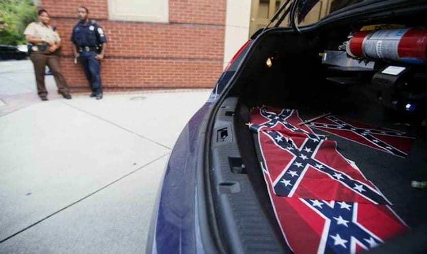 Este foi o mais recente ato de provocação envolvendo o símbolo da Guerra Civil, atualmente visto por muitos como um símbolo da supremacia branca, desde que os nove membros da comunidade negra de Charleston foram mortos a tiros por um jovem branco durante um estudo bíblico na Carolina do Sul.