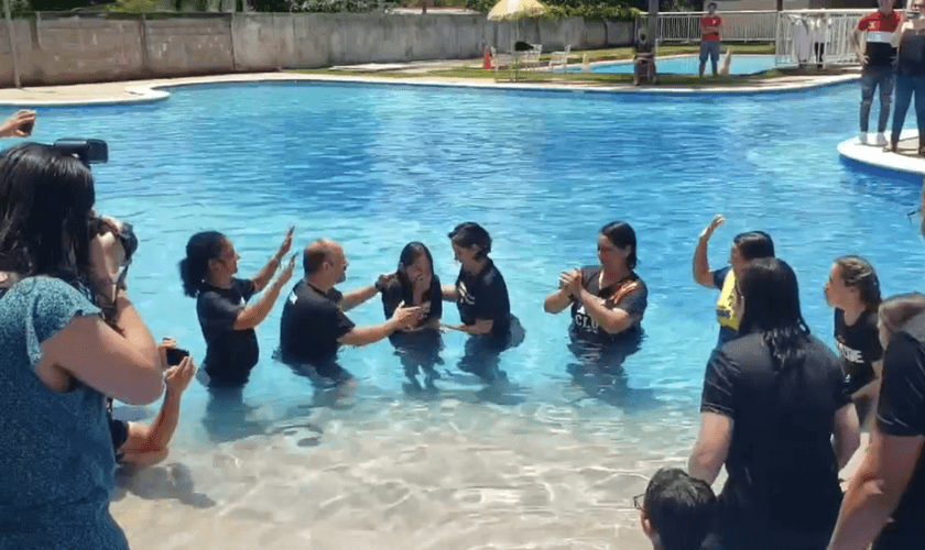 Laura, que completou 10 anos em outubro, foi batizada por imersão. Ela estava acompanhada do pai e da mãe, Michelle, que auxiliou o pastor Claudir Machado, líder da igreja em Brasília, que realizou o batismo.