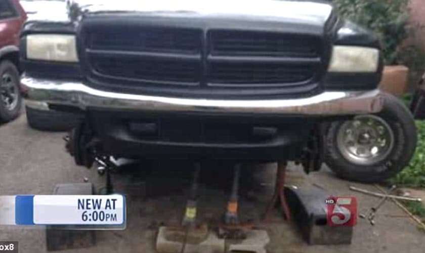 Sam Ray, de 18 anos de idade, fazia alguns ajustes em seu caminhonete e estava prestes a fazer uma pausa no trabalho, quando o macaco que sustentava o veículo cedeu e a caminhonete desceu sobre ele, prendendo-o ao chão, segundo relatou o jornal norte-americano 'The Blaze'.