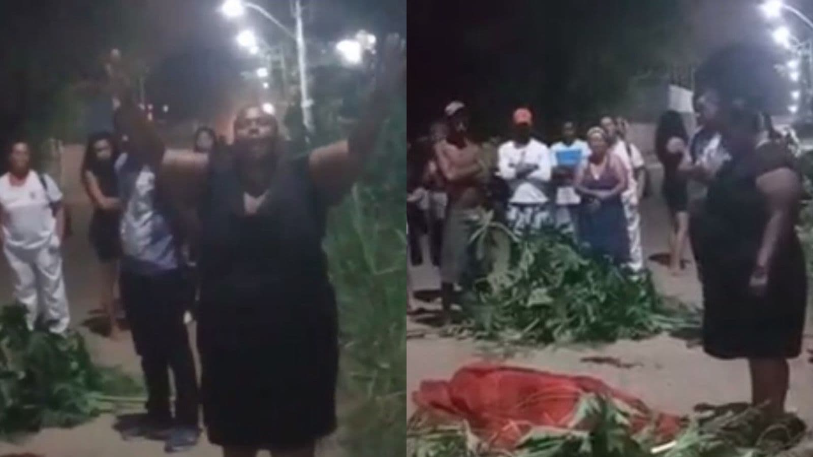 A mulher estava rodeada por moradores da região, e enquanto falava, um rapaz cobriu o corpo de seu filho. Neste momento, ela fez um apelo aos ouvintes: