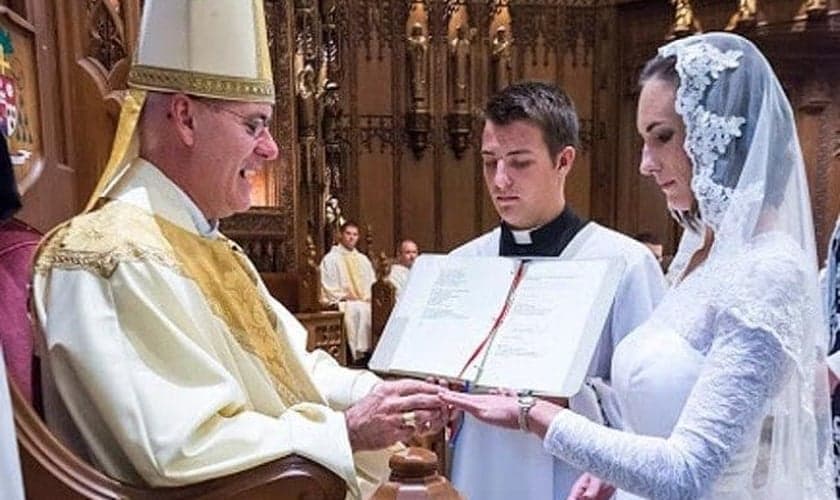 "Receba o anel que irá te marcar como uma noiva de Cristo", disse Rhoades durante o ato. "Mantenha íntegra a sua fidelidade ao seu Esposo, para que um dia você possa ser admitida para a festa de casamento de alegria eterna."