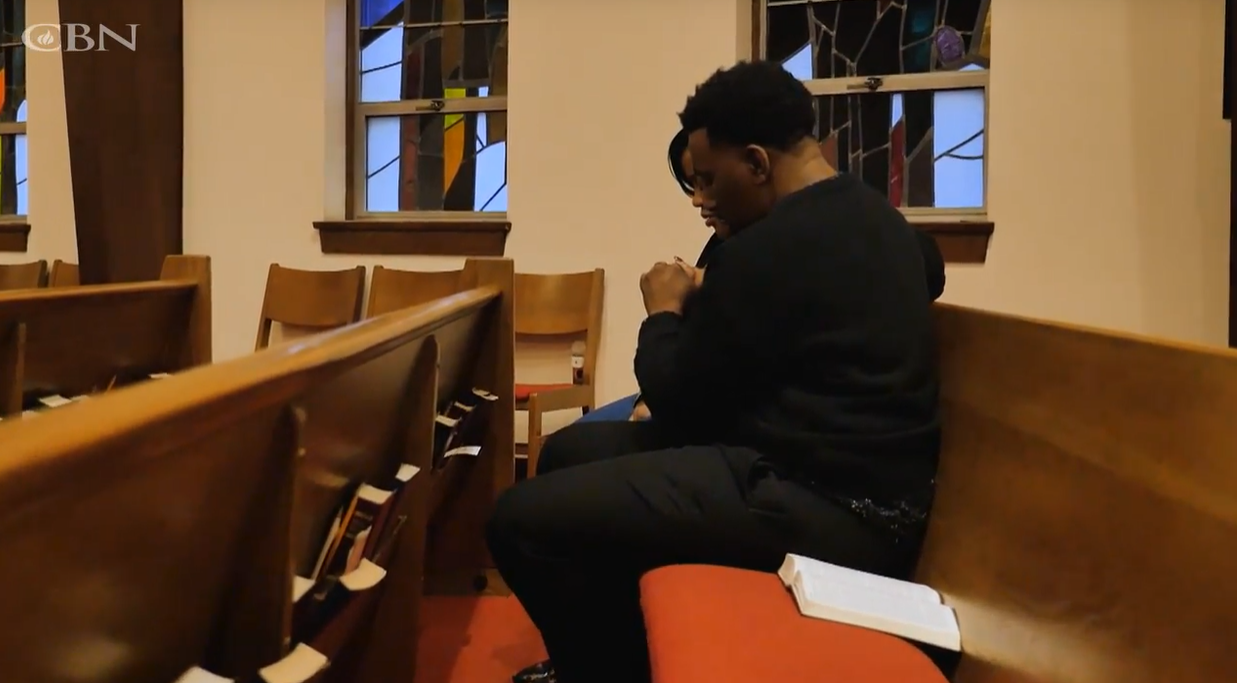 Malika e Isaac orando. (Foto: Reprodução/CBN News)
