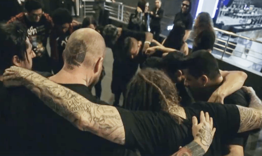 Com o auxílio da tradução do missionário americano Nic Billman, o músico Brian Head Welch aproveitou o tempo em que esteve com alguns jovens no camarim para compartilhar o testemunho da banda.
