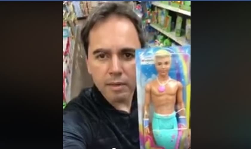 "Olha aí, gente... mostrar para vocês uma vergonha, covardia com as nossas crianças: se lembram do Ken? É, o que faz casal com a Barbie. Pois é, quem te viu quem te vê, roupinha de sereia, para crianças acima de três anos, com cores LGBT", disse o vereador. "Onde é que isso vai parar? Fora, ideologia de gênero".