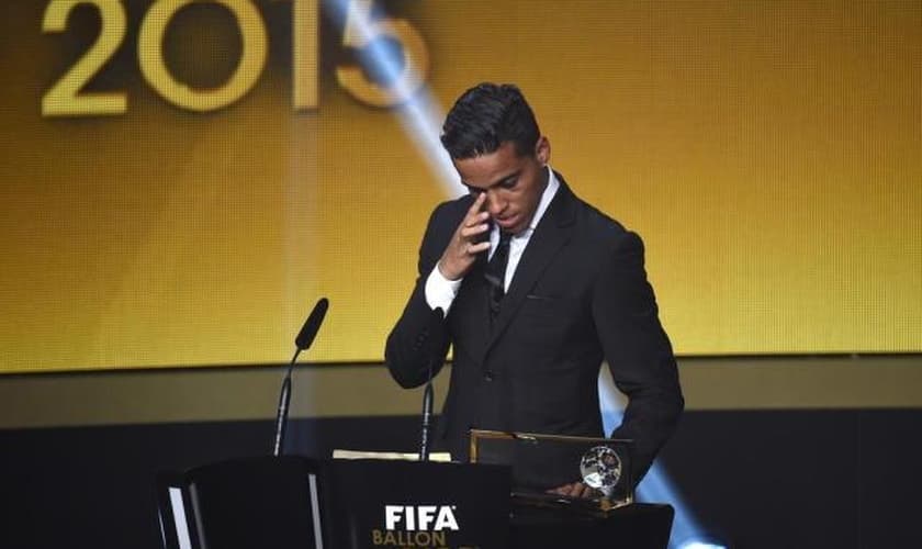 "Queria primeiramente agradecer a Deus por este momento único na minha vida e também por eu estar aqui, conhecendo pessoalmente grandes jogadores. Quero agradecer muito à minha família, à nação brasileira que votou em mim, minha esposa, minha filha, que são tudo para mim", disse.