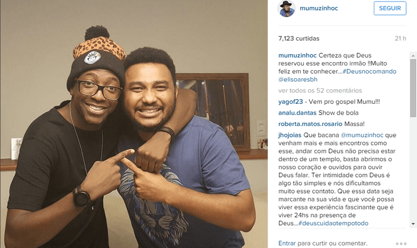 "Certeza que Deus reservou este encontro, irmão! Muito feliz em te conhecer... #Deusnocomando", escreveu Mumuzinho na legenda da imagem.