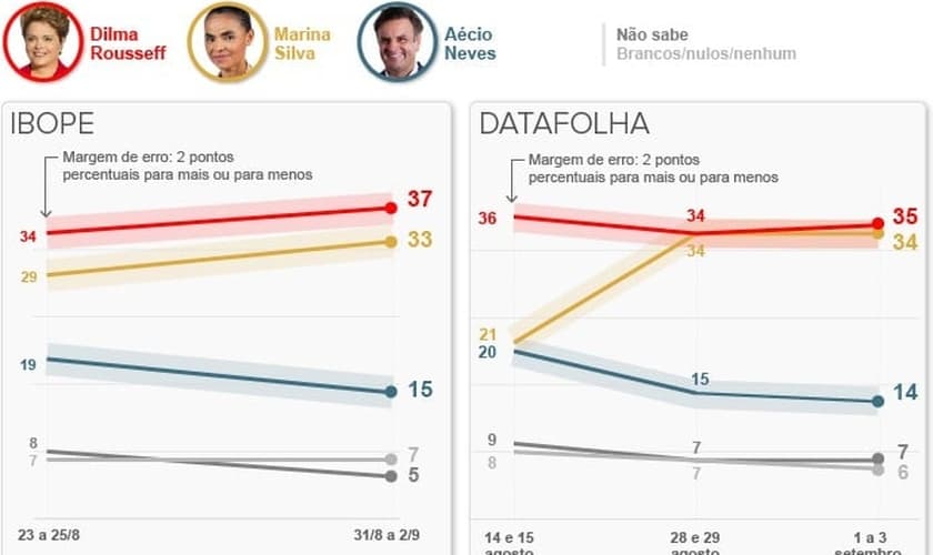 Dilma e Marina estão empatadas tecnicamente, apontam Ibope e Datafolha