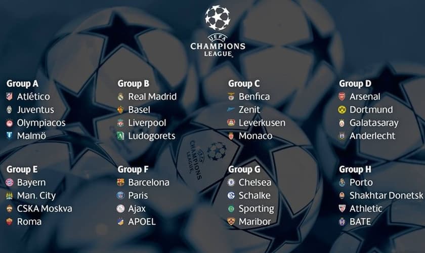 Se não houve um grupo da morte, ao menos algumas chaves ficaram marcadas pelo equilíbrio. O Grupo C tem Benfica, Bayer Leverkusen, Zenit e Monaco, enquanto o D conta com Arsenal, Borussia Dortmund, Galatasaray e Anderlecht.