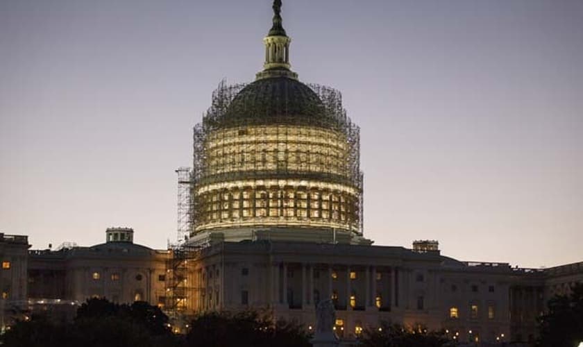 Imagem de arquivo do dia 24 de outubro mostra que o Capitólio, sede do Congresso dos Estados Unidos, em Washington, passa por restauração (Foto: AP Photo/J. Scott Applewhite, File)
