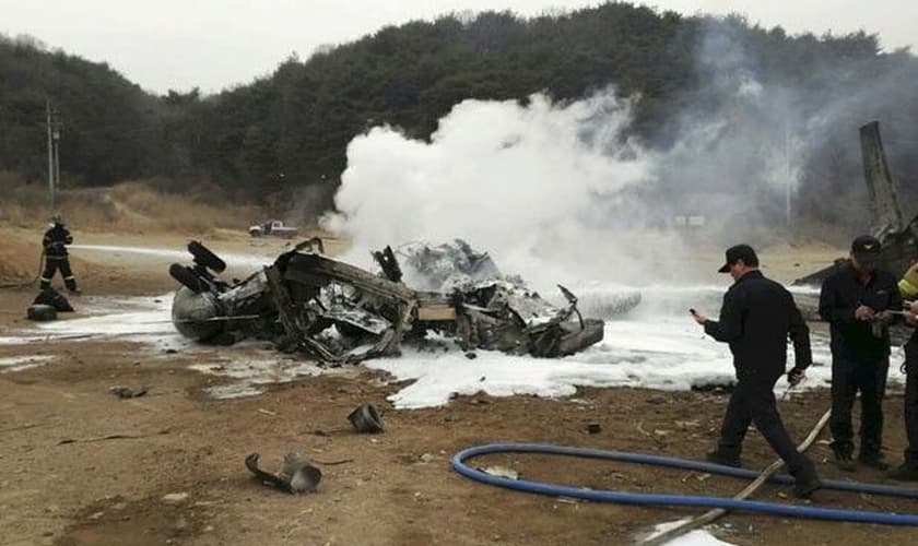 A agência Yonhap afirmou que os 12 oficiais a bordo do aparelho sobreviveram ao incidente, que aconteceu em um momento de grande tensão com Pyongyang.