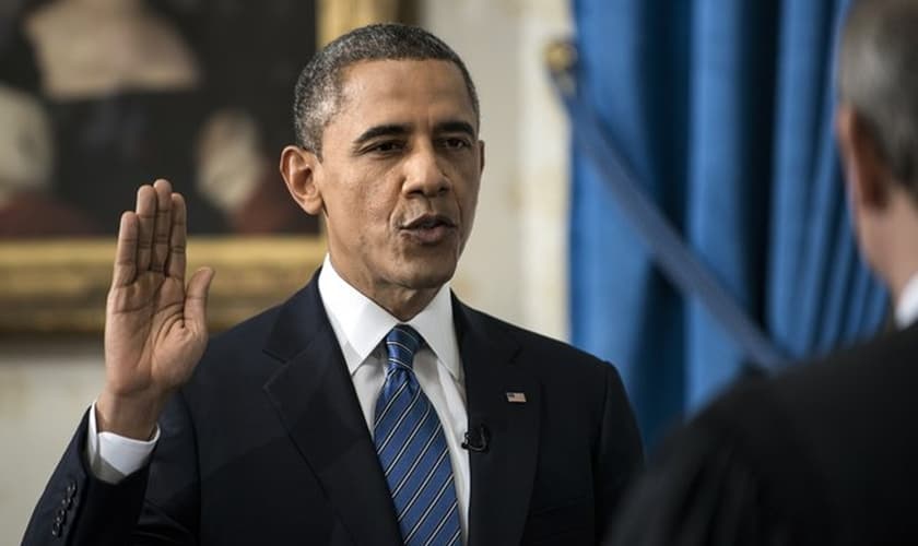 Obama fez o juramento em cerimônia privada no Salão Azul da Casa Branca ao lado da mulher, Michelle, e das duas filhas (20/01)