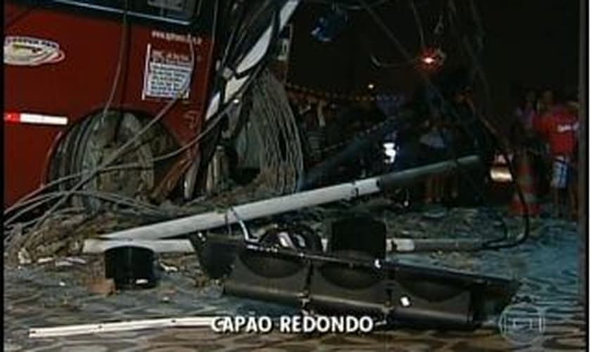 O coletivo, que fazia a Jardim Vera Cruz - Capão Redondo, derrubou um poste e um semáforo. Vários fios ficaram expostos.