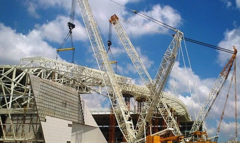 A construtora explica em nota que pouco antes das 13h, o guindaste que içava o último módulo da estrutura da cobertura metálica do estádio tombou provocando a queda da peça sobre parte da área de circulação do prédio leste – atingindo parcialmente a fachada.
