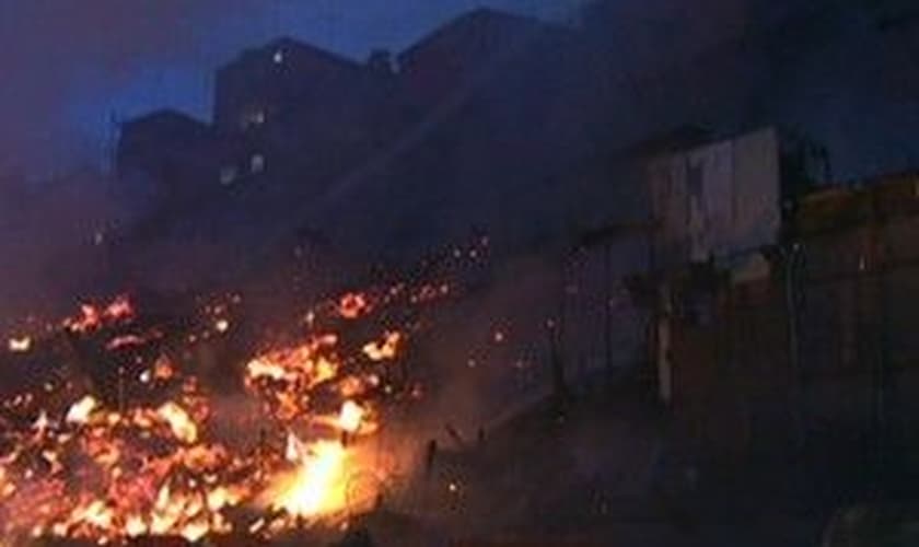 Incêndio atingiu a favela de Paraisópolis, na Zona Sul de São Paulo, na manhã desta terça-feira (10). O fogo que destruiu 100 barracos começou, por volta de 4h, na Rua Dr. Jerônimo de Campos Freire.