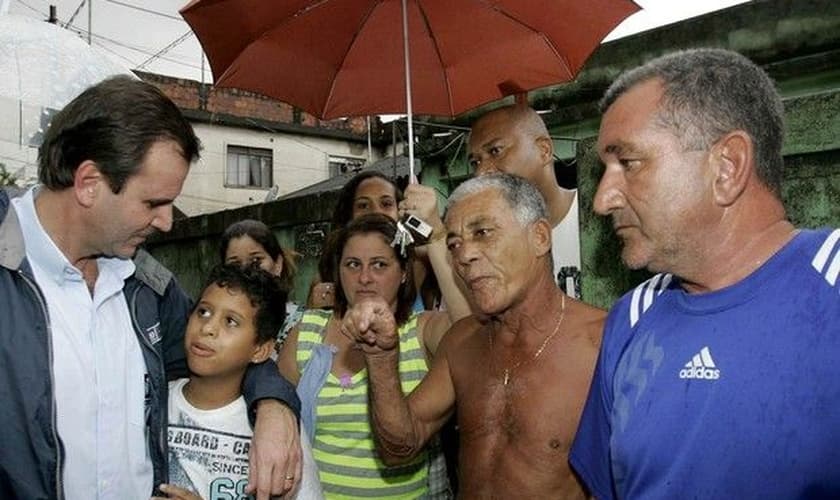 Prefeito do Rio visita famílias em área inundada (Foto: Alessandro Costa/Agência O Dia/Estadão Conteúdo)