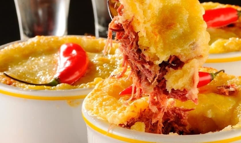 É feito com carne-de-sol, jabá, charque ou carne-seca, ou frango desfiado, coberto com purê de macaxeira, aipim ou mandioca temperada com manteiga de garrafa e gratinada com queijo coalho.