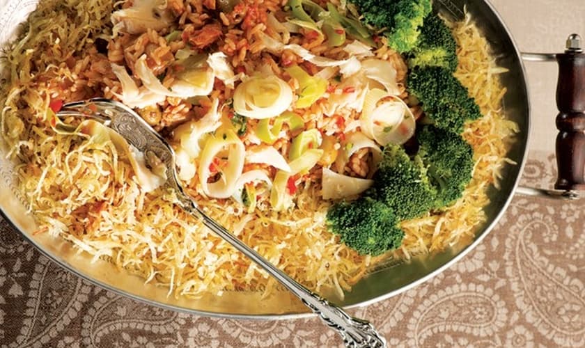 ½ kg de arroz (pesado cru) refogado no alho e cozido al dente;