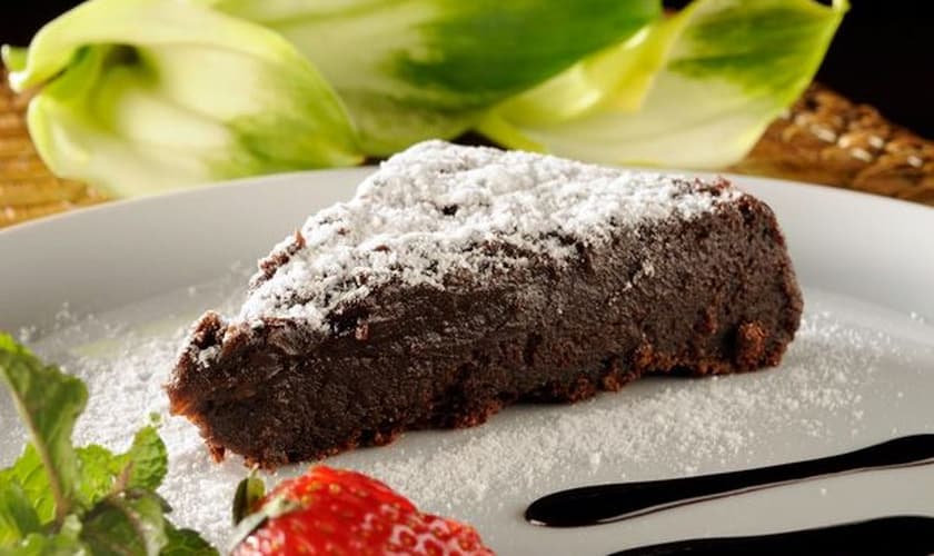 5. Retire o bolo do forno e cubra-o com a cobertura de chocolate. Polvilhe açúcar de confeiteiro para decorar.