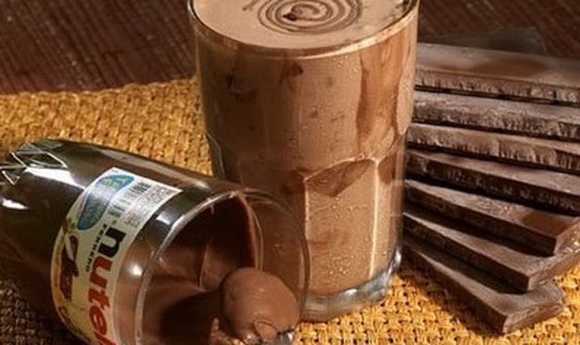 No liquidificador bata o leite, o sorvete e a nutella, feito isso despeje a bebida em um copo alto;