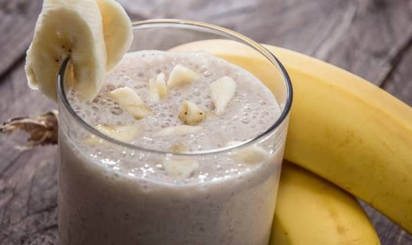 Bata todos os ingredientes no liquidificador e sirva no copo decorado com mel.