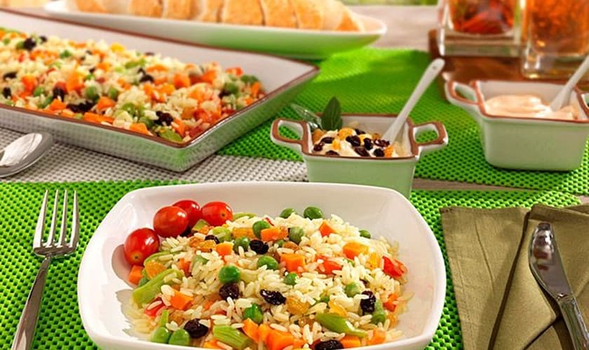 Refogue a cebola e o alho na margarina. Junte o arroz e refogue até secar bem. Junte os legumes picados e a água com o caldo de galinha dissolvido. Quando ferver, ajuste o sal. Tampe e deixe cozinhar em fogo baixo. Desligue o fogo quando secar. Deixe o arroz na panela, descansando, por mais cerca de 5 minutos.