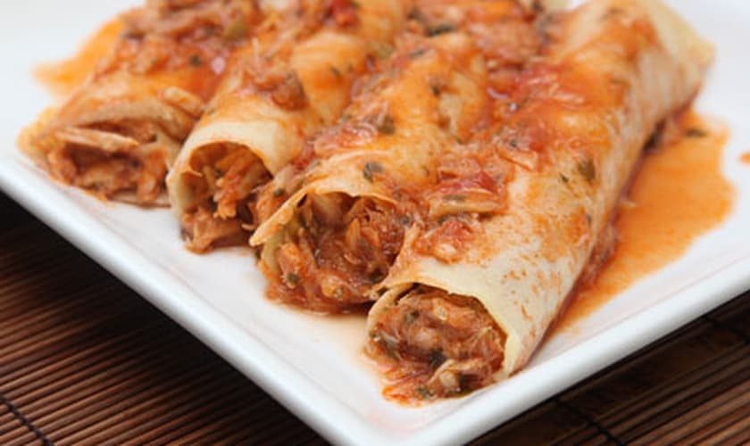 Mantenha no fogo brando por 3 minutos. Recheie os discos de panquecas, e dobre-os no formato de crepes.