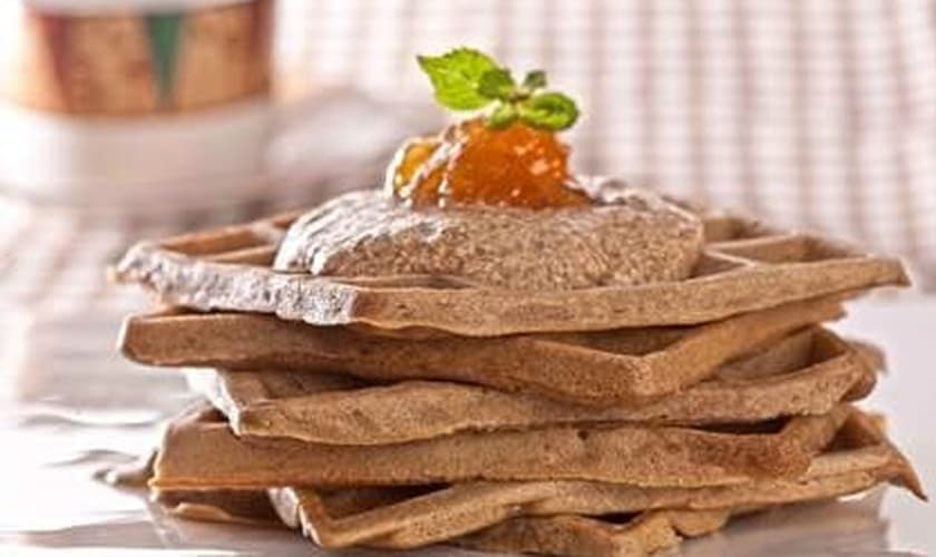 3. Esquente o aparelho elétrico próprio para waffle. Despeje nele um pouco de massa, sem encher muito para não derramar. Feche e deixe por 6 a 8 minutos ou até os waffles dourarem. Repita a operação até terminar a massa. Sirva com creme de café com laranja. Para acompanhar, geleia de laranja.
