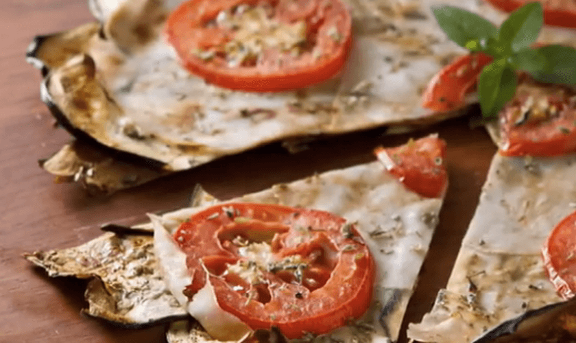 Corte a berinjela em fatias finas e doure em uma grelha.