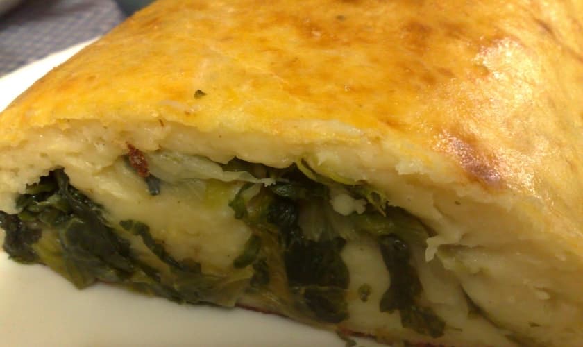 Prepare o recheio: em uma panela, aqueça o óleo em fogo médio e refogue o RECEITA DE CASA™ rapidamente. Junte o espinafre e cozinhe por 5 minutos. Salpique com a farinha de trigo, acrescente o leite e mexa bem. Prove o tempero e adicione mais RECEITA DE CASA™, se necessário. Deixe cozinhar, mexendo sempre, até encorpar.