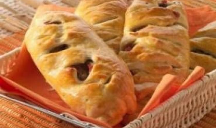 Pão de escarola e calabresa. Anote a receita